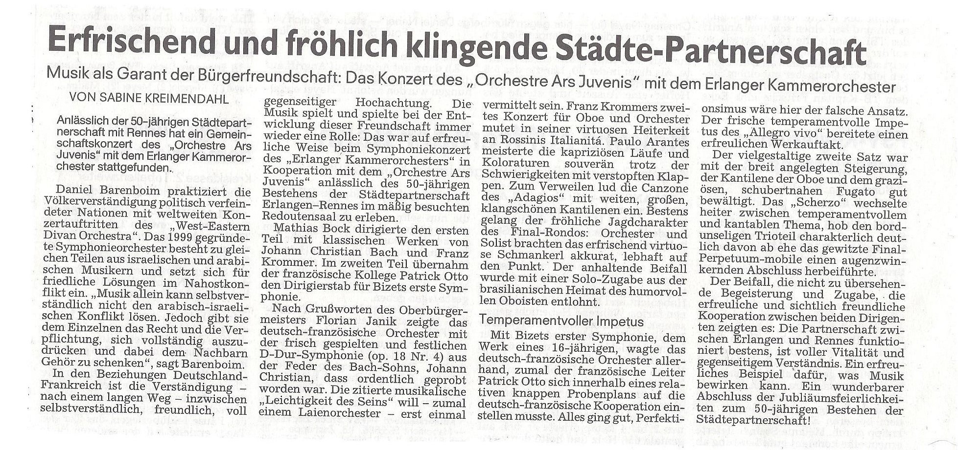 Partnerschaftskonzert mit "ars juvenis" aus Rennes